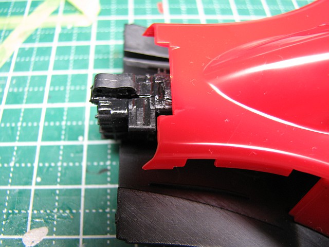 再接着。ちょっとカットしすぎ。もう0.5~1mmくらい長くても良かったかも。リアウイング取り付け部は変えてない。