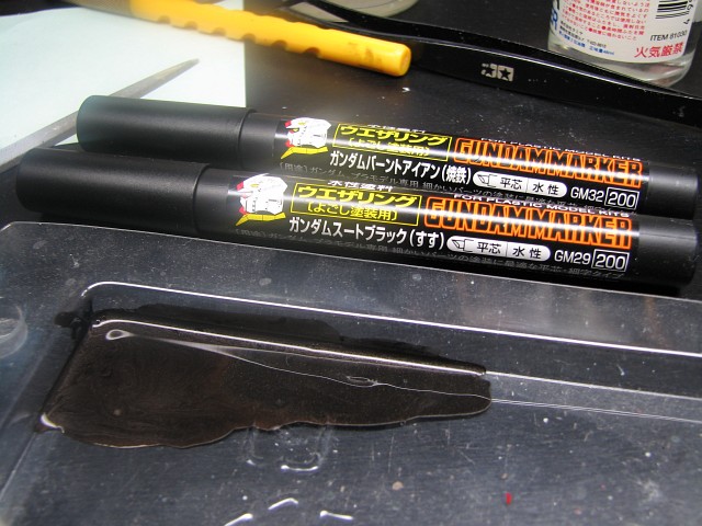 昨日あんまりうまくできなかった黒い部分はガンダムマーカーで修正することにした(エアブラシするのは面倒なんで)。