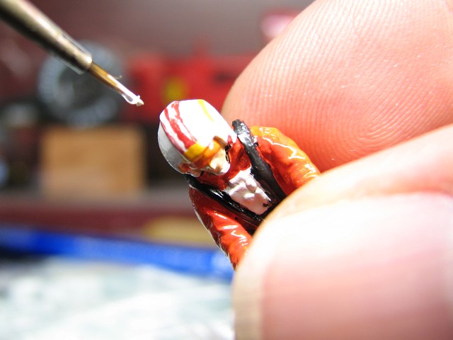 塗っております。かなりボロい筆でも息を止めて塗ったらなんとかなる。何度かリタッチして完成。雑だけど適当なところでやめないとキリがないし神経が持たない。