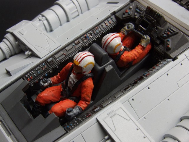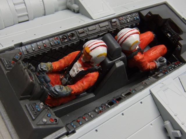 ヘルメット以外にフラットベースを塗って艶消ししてパイロットフィギュア完成(メットのデカール貼ってないけど)。コックピットに収めてみた。