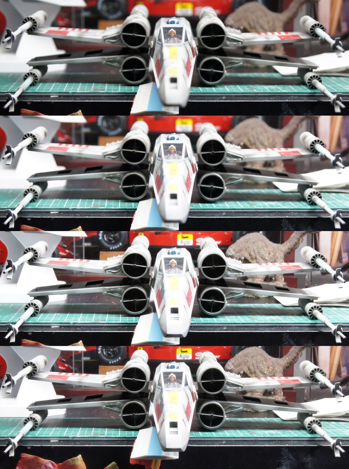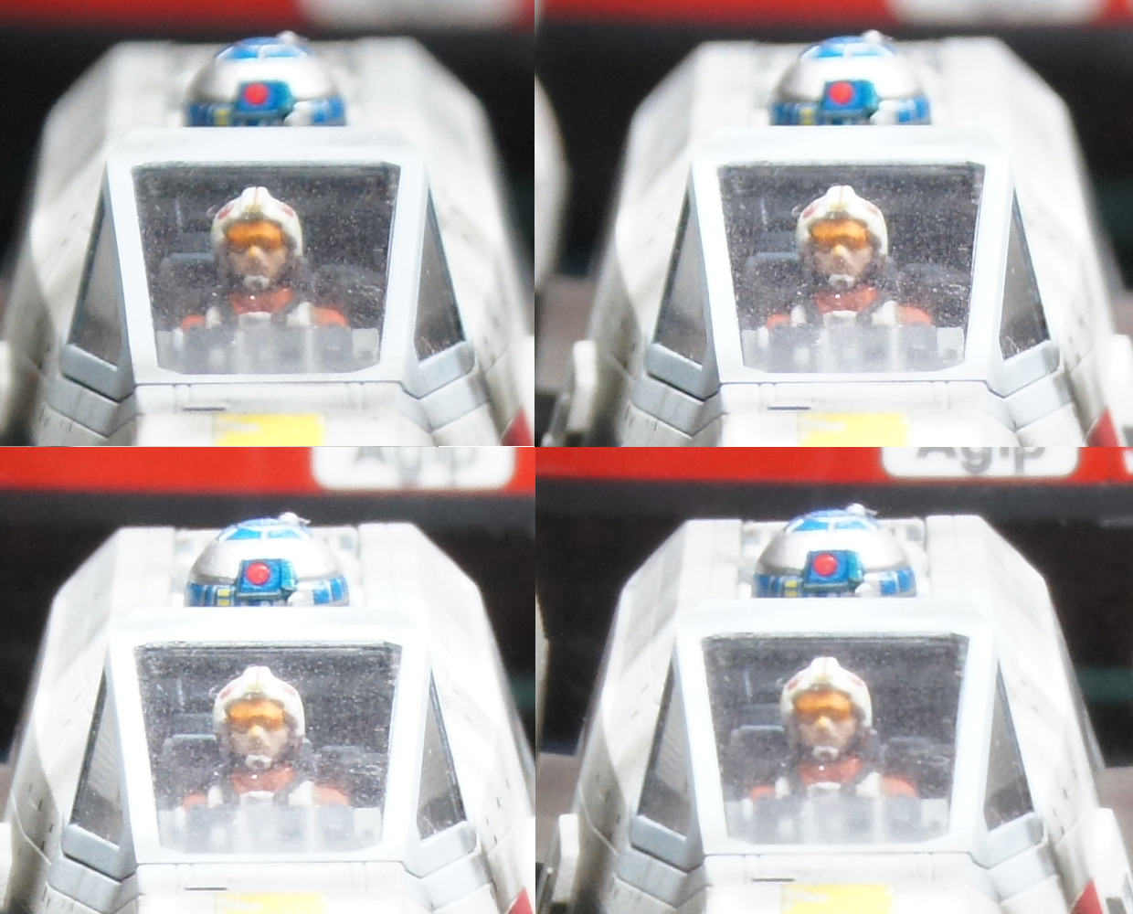 でも、所謂小絞りボケが気になったんでチェックしてみた。パイロット部分等倍切り出し。左上がF5.6でその右がF8。下段の左がF22で右下がF36。よく見るとF36がF22よりぼやっとしてる。これが小絞りボケってやつですかあ。でも深度が取れる方がいい場合もあるし縮小したら目立たなくなるんで別に思い切り絞ってもいいかも。