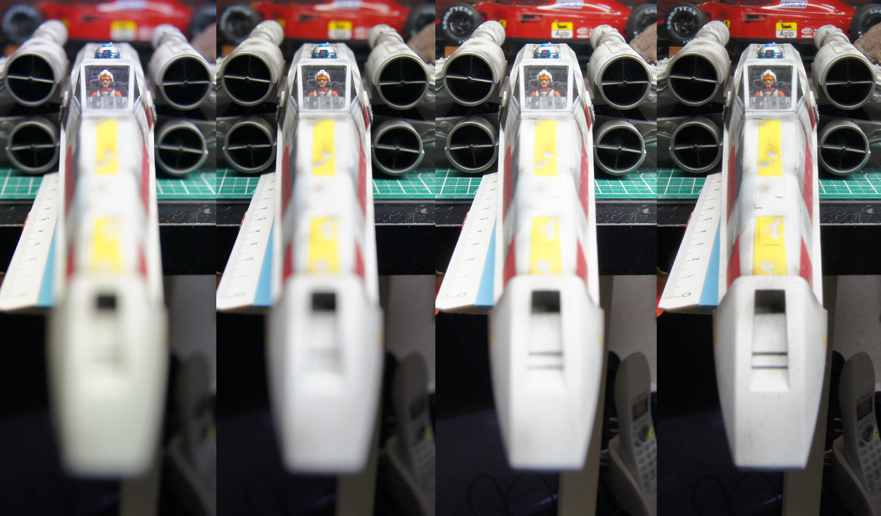 次は望遠側で、上からF5.6,F8,F22,F36。どちらもピントはパイロットに合わせている。