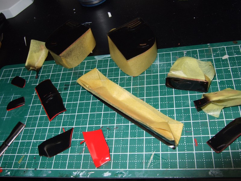 ウイングとか、裏が黒い場合どう塗るのが正解なんだろう。今回は先に赤を塗ってしまったんで、マスキング(面倒!)して黒を吹いた。そこそこうまくいくんだけど、端の方にうまく塗料が回らなかったりして修正が必要になる。案外マスキングなしでやったほうがうまくいくかも?