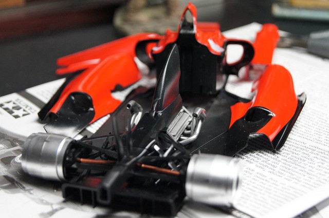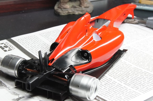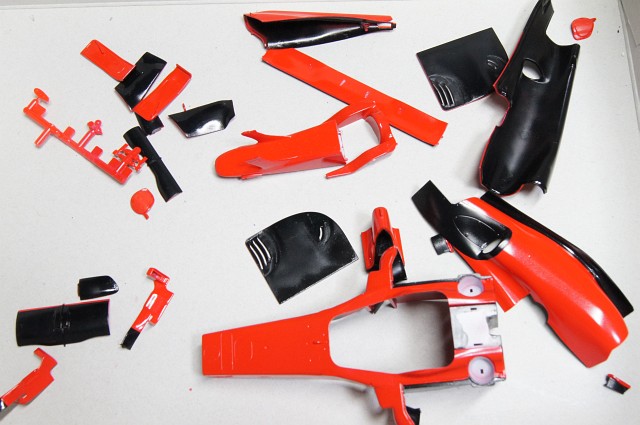 このあとモノコックは中にシートを入れて下の黒い部分を接着してしまった。