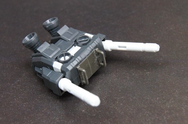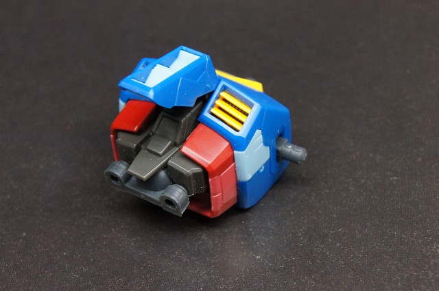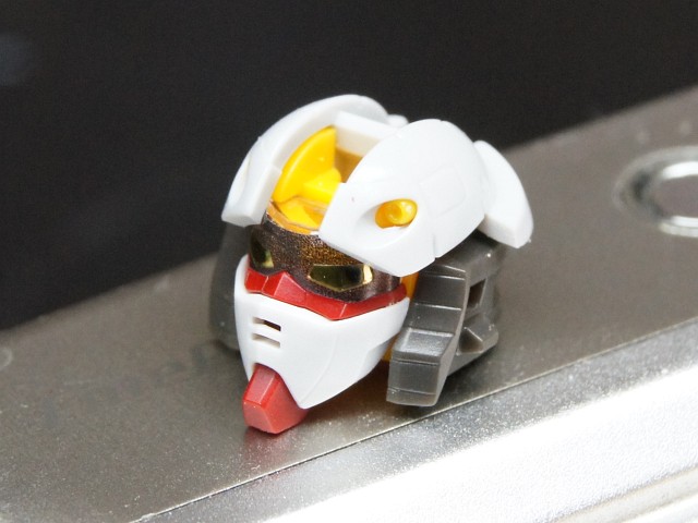 顔。バルカン砲も黄色になってるし、マスクにも穴が開いてるしで、目にシールを貼るだけで、