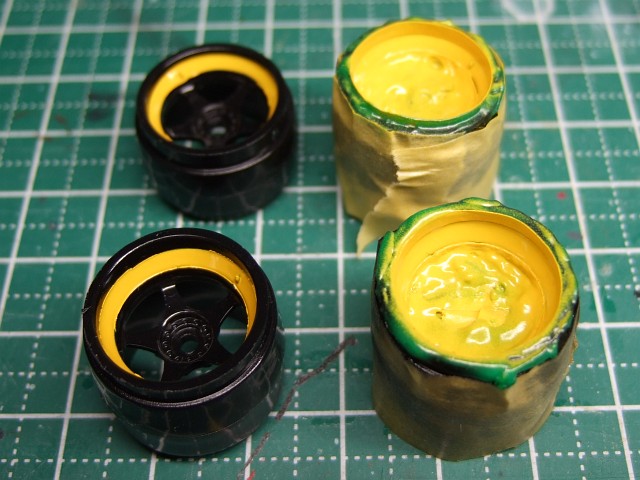 きっちりマスキング出来なくてかなりはみ出した。段差もできるし。で、ナイフでカリカリと修正したり、黒塗ったりしてなんとかましになった。