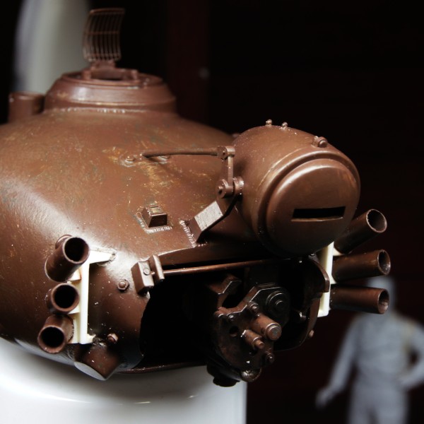 チャフだかスモークだかの発射装置部分を取り付け。角度はいろんな作例を参考に。
