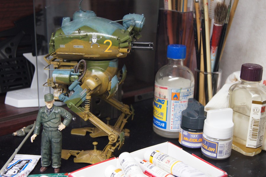 フィギュアも塗ってみた。ラッカーで適当な色を塗って、油彩で影をつけてみただけ。どうも愛情がこもってない。