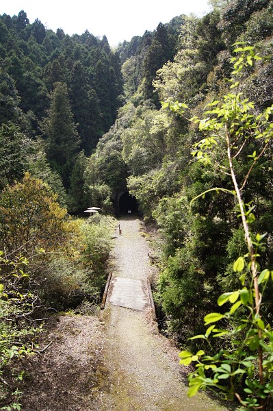 山道を抜けて変電所の裏に着いた。近くに近鉄のトンネル(こっちは現役)があって、線路の下を通って東青山駅方面へ向かう。