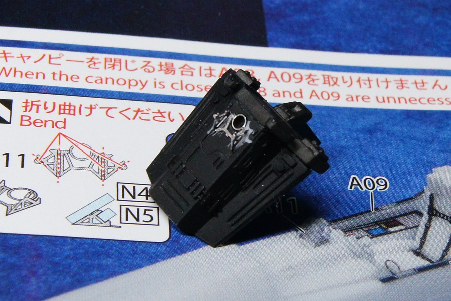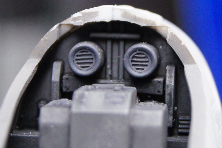 コックピット後部の丸い部分の中のスリット。ちょっとねじれたりゆがんだりしててしまった。