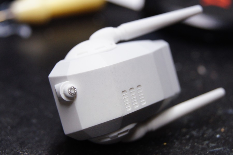 頭部パーツの後ろのでっぱりの上。ついでにパーティングラインの消し忘れも発見。ほぼ見えない場所だけど。