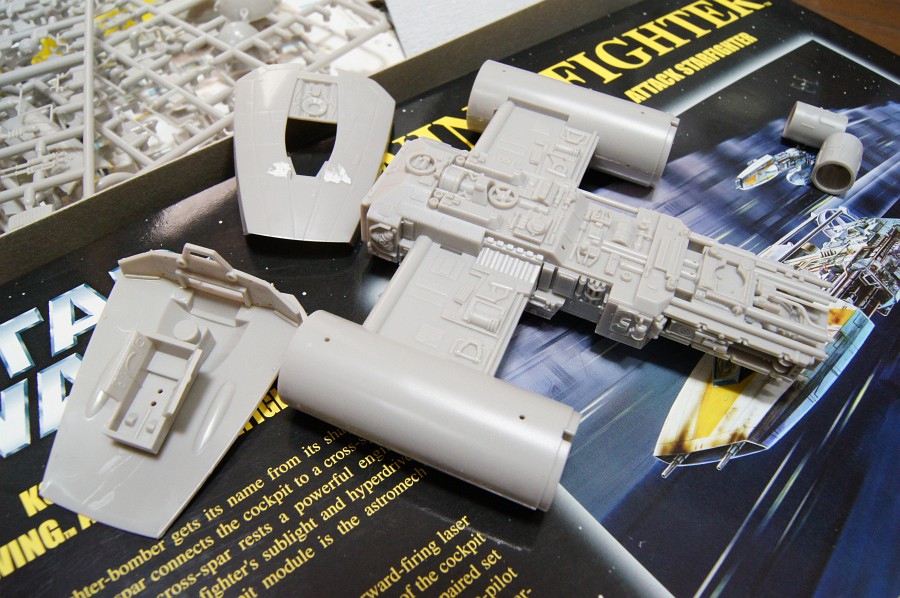が発売ってことで、2007年に買ってからずっと積んでいたファインモールドの1/72 Y-Wingを引っ張り出して作り始めてみた。(関係ないか)