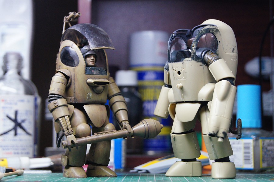 とりあえず中身をグレー(タイヤブラック)で塗ってからいろいろ接着。ポリパーツはお決まりのハセガワ製マスキングリキッドでコートしてから塗るっていう手法。ほかにいい方法無いもんか?
