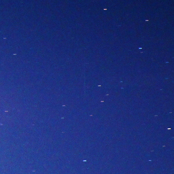 0時から1時頃までがんばって、肉眼で4つ見えたんだけど、その中の1つが撮影中に流れたんで、後から確認したらこれかな?って感じに写っていた。肉眼でもかなり暗かったし、こんなもんかな。ただのノイズだったりして。