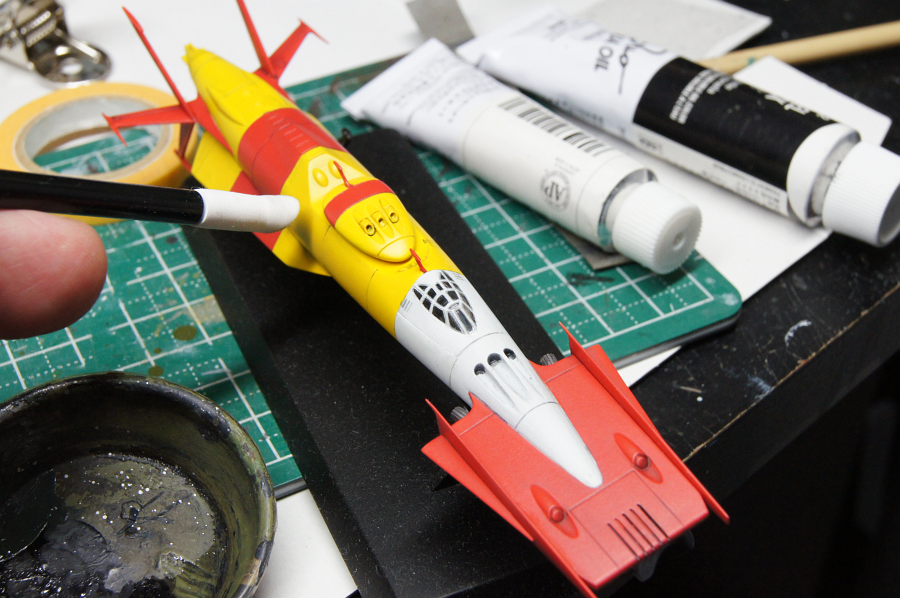 こういうのも艦橋というんだっけ?小さくてマスキングも困難で苦労した。爪楊枝やナイフではみ出した塗料を削りとって傷だらけに。