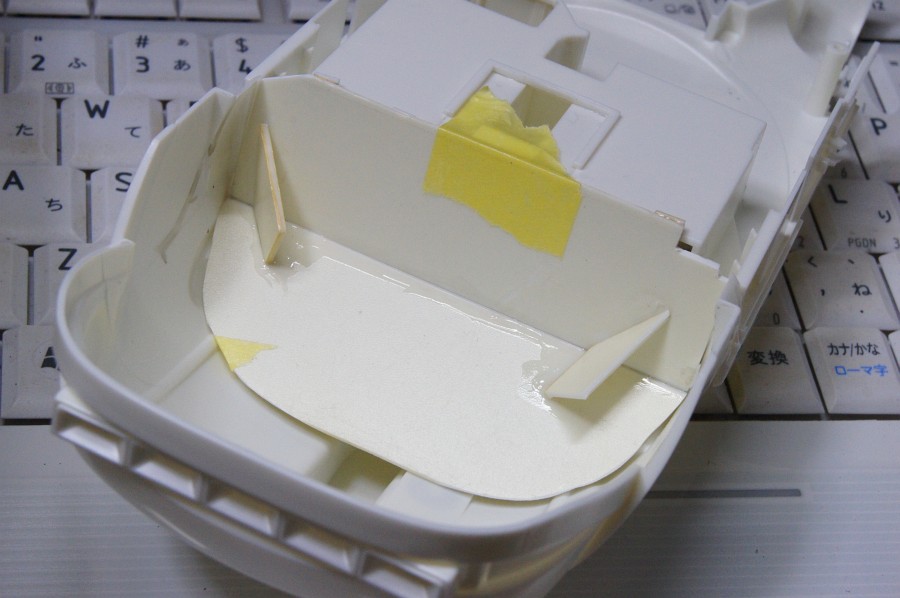 それだけだと裏から見た時スカスカになるんで、プラ板を貼りこみ。
