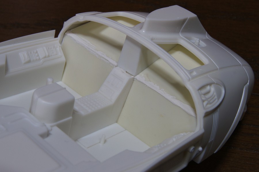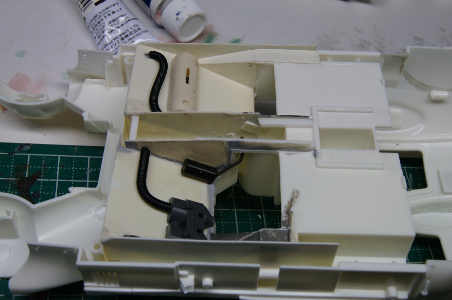 …と思ったが、天窓がコックピット後部の間仕切りで中途半端に塞がれているというアホな部分だけはどうにも納得できないので、せめてそこだけは直したいなってことで、勢いでプラ板を現物あわせして適当に組んでこんな感じにしてみた。