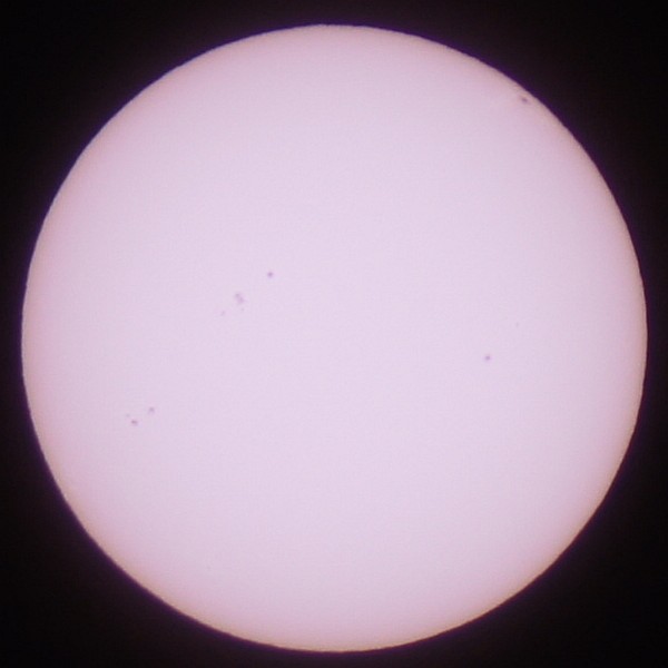 撮影テスト。今朝の太陽。黒いのは黒点??