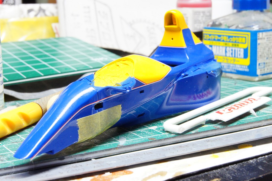ラインデカールのお陰で、青と黄色の境目の処理がだいぶカバーできる…