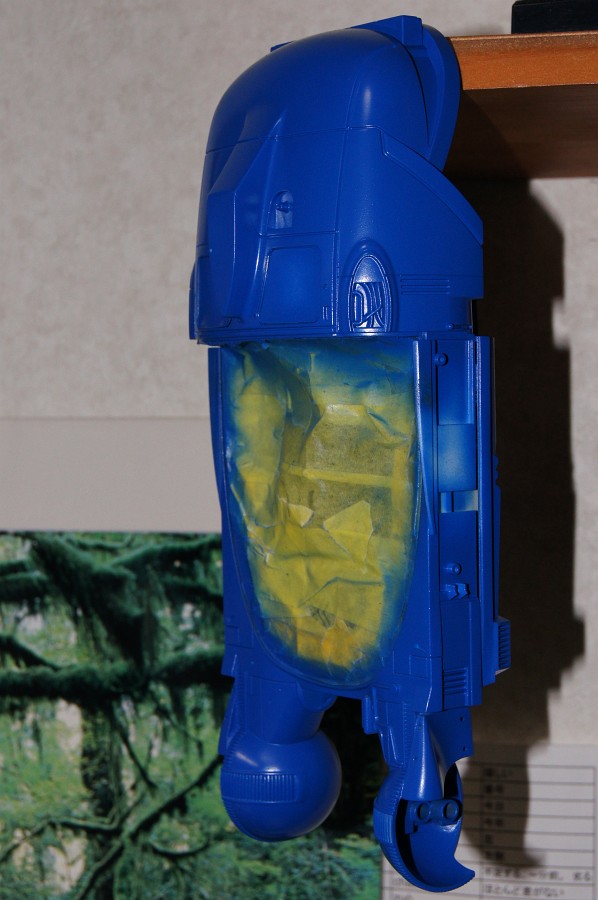 ネットであさった写真を見ると、青というよりミディアムブルーに近いんだけど、記憶色は青なんで、青っぽい色にした。レシピは、コバルトブルーベースに白、ミディアムブルーを少々という感じ。