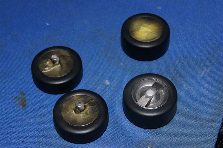 スピナーのタイヤは、黒く塗っておいてからホイールをメタルカラーのステンレスで塗って、マスクして、また黒(にかなり近いグレー)で塗った。