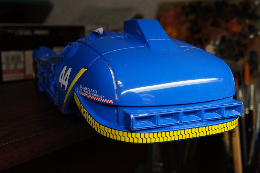 ボディーは クレオスのMr.ラプロス#4000と#6000で研いでからコンパウンドで磨いた。といってもあんまし丁寧にはやってないけど。あとは色のついてないライトはクリアイエローで塗っておく。