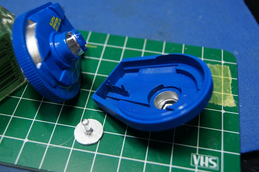 電飾するわけじゃないだけど空っぽなのは気になるんで、内側をシルバーで塗り、プラ板を丸く切ったものに透明ランナーをくっつけたものをはめ込んで蓋にした。