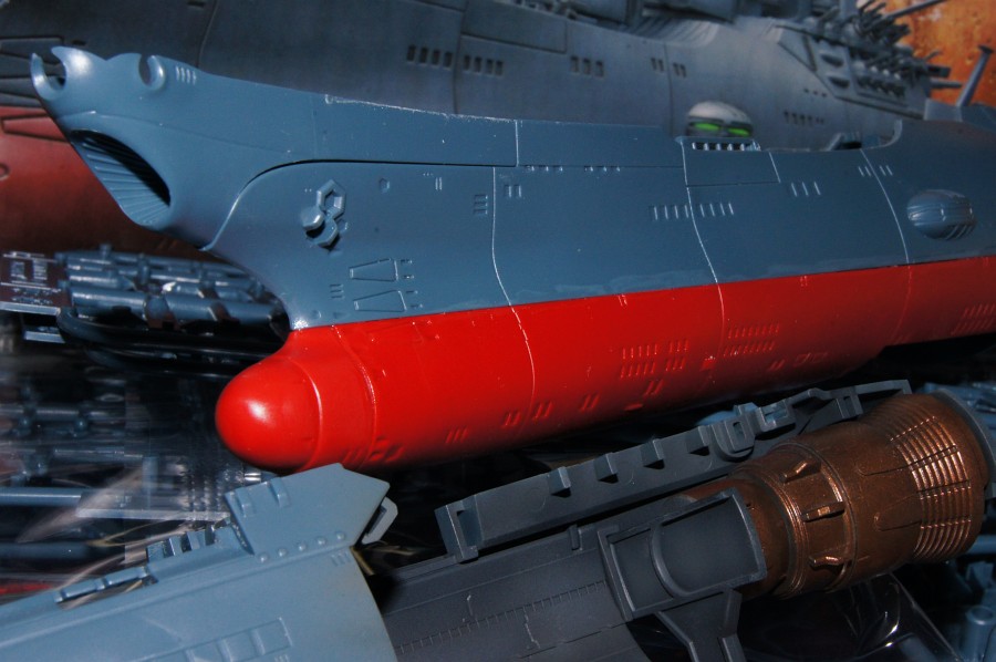 このキット、3Dモデルからおこしてあるんだろうけど、昔のキットに比べてなんと出来のいいことか。艦首波動砲の下のラインの感じとか、細かいパルスレーザー砲に比べてボディーのモールドが太めのとことかが若干気に入らないけど。