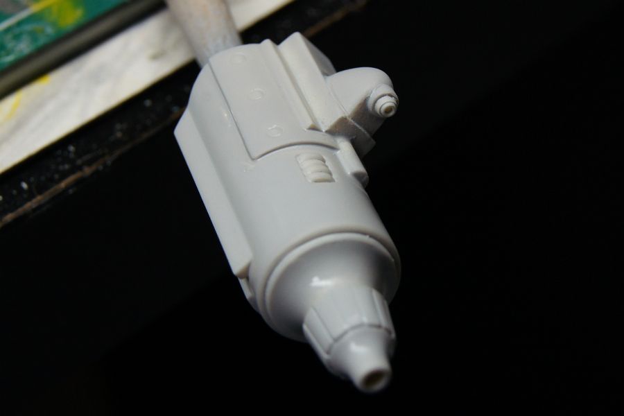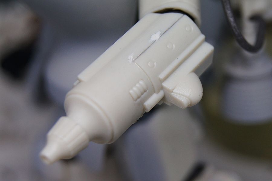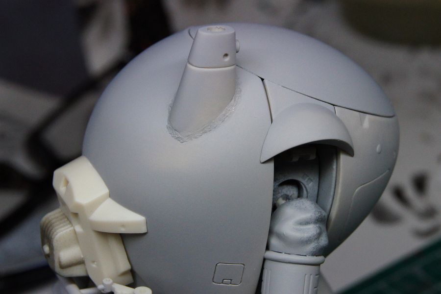 あと、右後頭部のサイトの付け根に溶接跡っぽいモールドを付けてみたけど、あんまりうまくいかなかった。