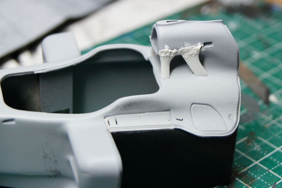 インダクションポッドのステーはここで接着しちゃう。結構ピタっとはまるけど、一応パテ埋めはしておこう。