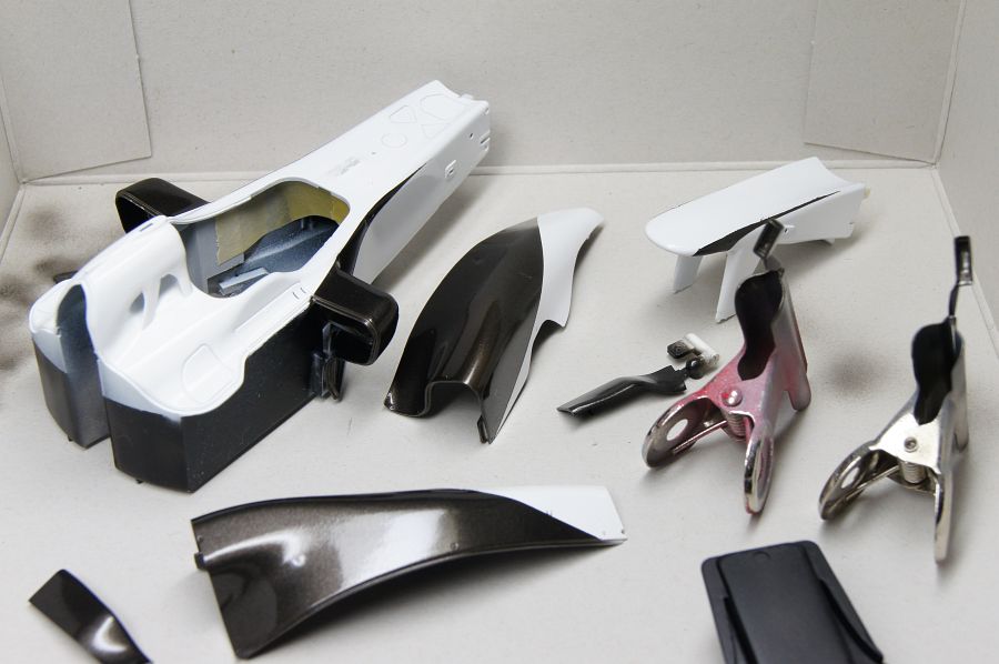 ザウバーC30のボディーの黒いところは、28番黒鉄色でいいと思い、そのまま吹いてみたがいかが?