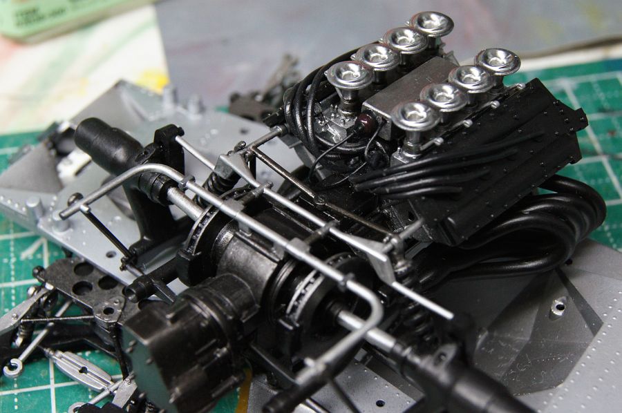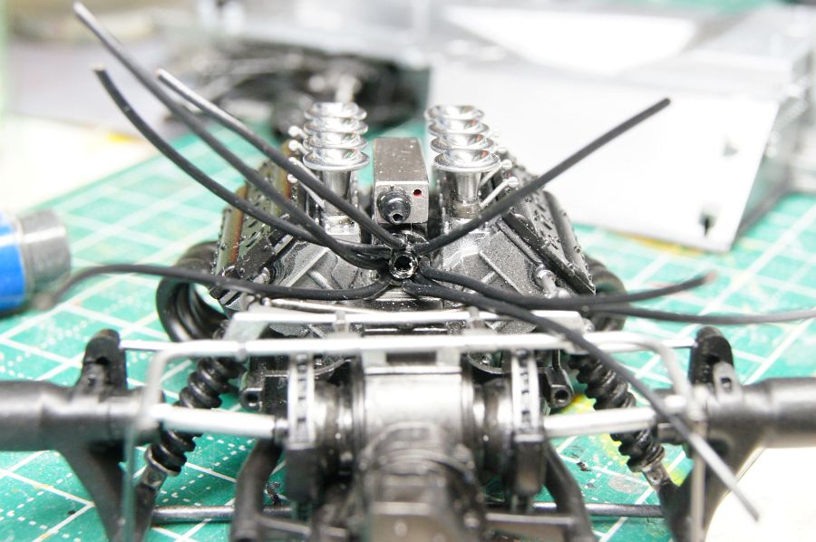 せっかくのDFVエンジンにプラグコードが無いのはさみしいんで追加しようとしたんだけど、コードがおさまるべき点火装置周りの省略が激しいんでなんとかすることにした。