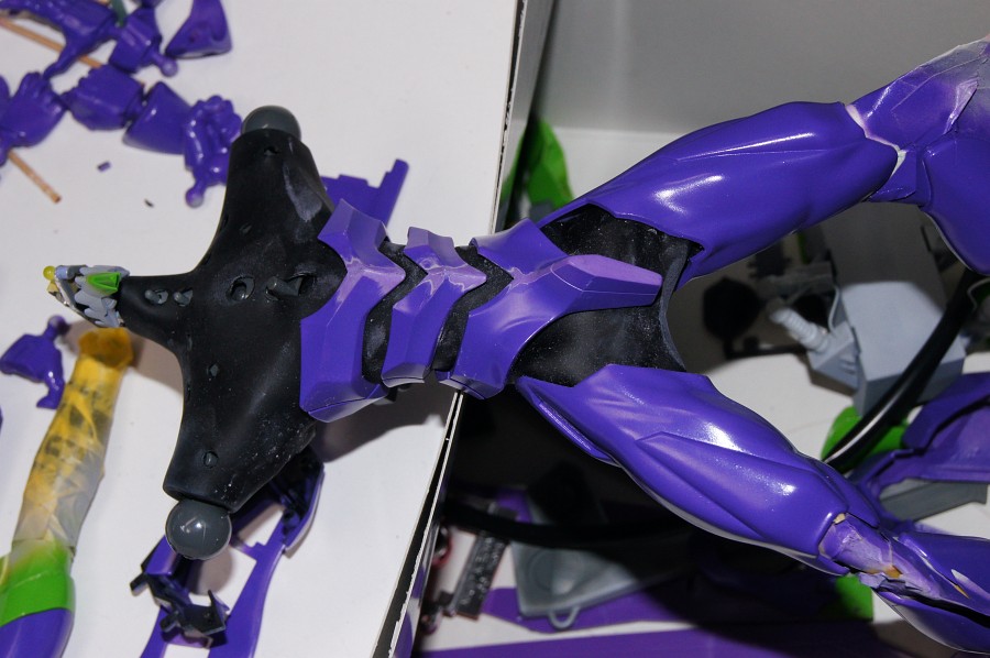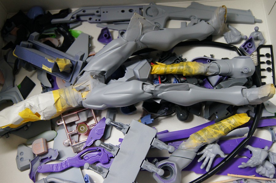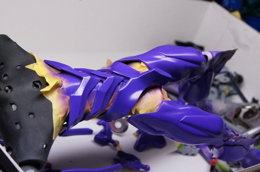 このPGエヴァが一番最初のPGだっけ。昔の設計なんで、でかいだけで、あとはめなんかできないのである。しかも中にゴムパーツが入ってるんで、マスキングも大変である。