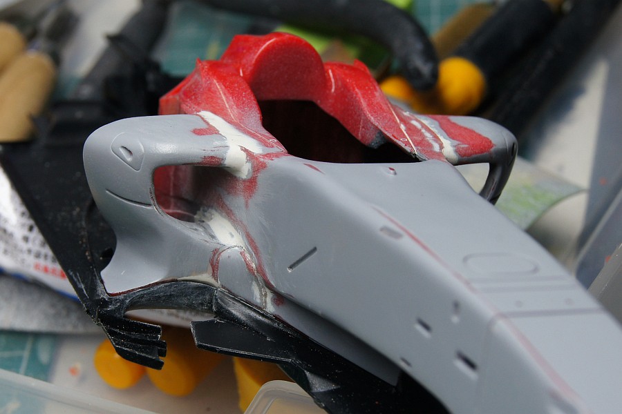 本体に接着して、またパテ盛ってならす。なかなか面倒…