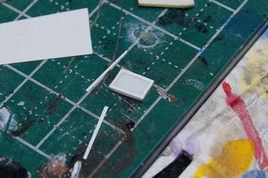 適当な厚みのプラ板が無かったんで適当なジャンクランナーの番号のところを切り出して、周りにプラペーパーを貼って外形を作った。