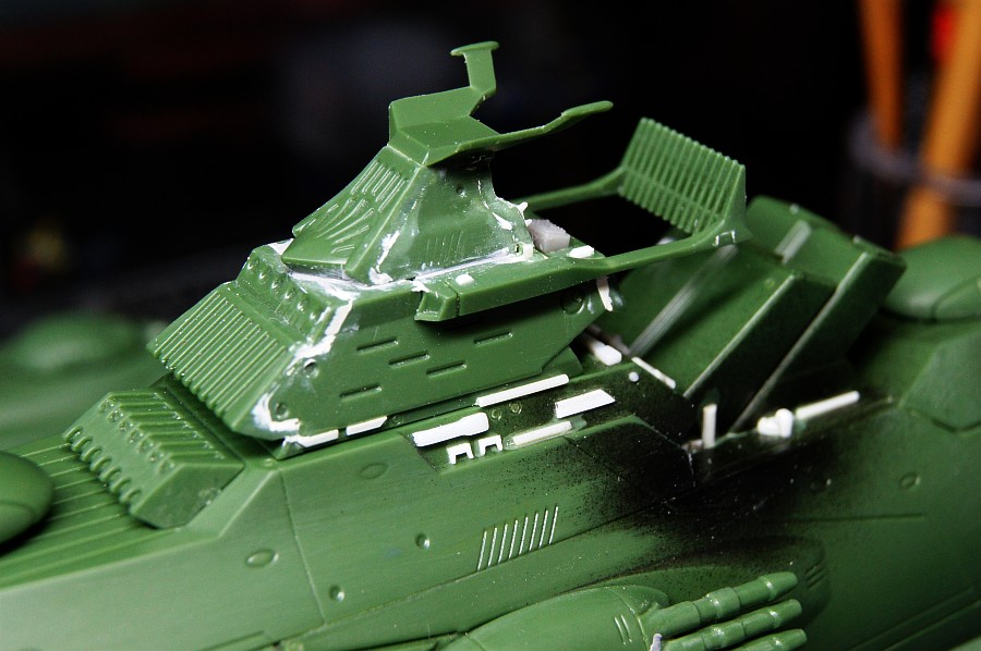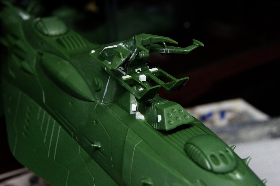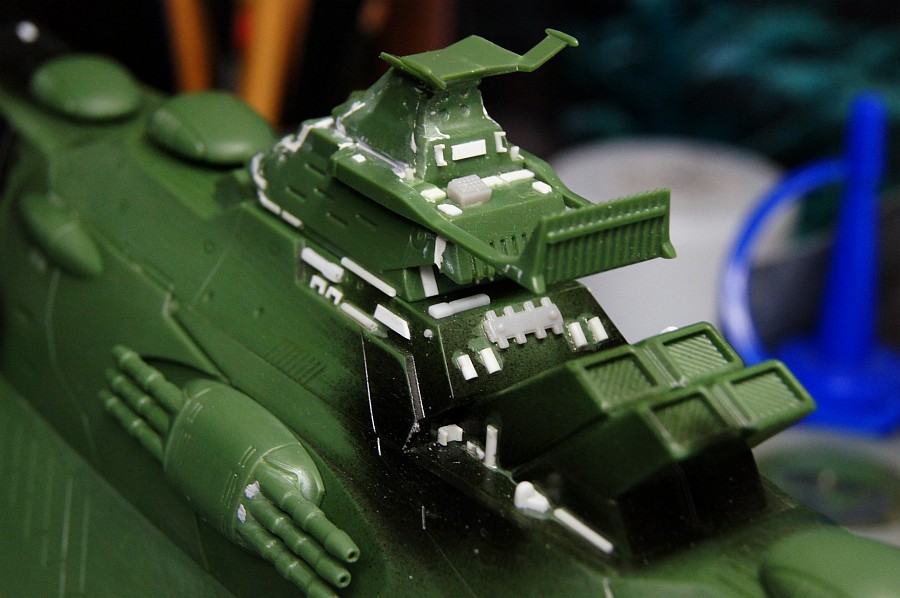 これでおしまいにしようと思ったけど、平日は塗れないんで、艦橋周りにいろいろ盛ってみた。