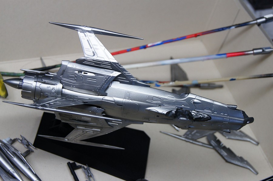 テカテカしてなかなかよい。この後マスキングでもしてさらに色調の違うシルバーを吹いたりしたらかっこいいんだろうけど、暑いので気合が入らないかも。