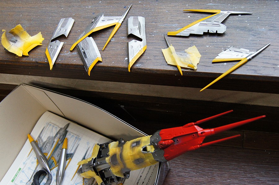 本体色に調子をつけようと、せっせとマスキングして黒目の色を吹いたんだけど、写真にするとあんましわからんね。う~ん。