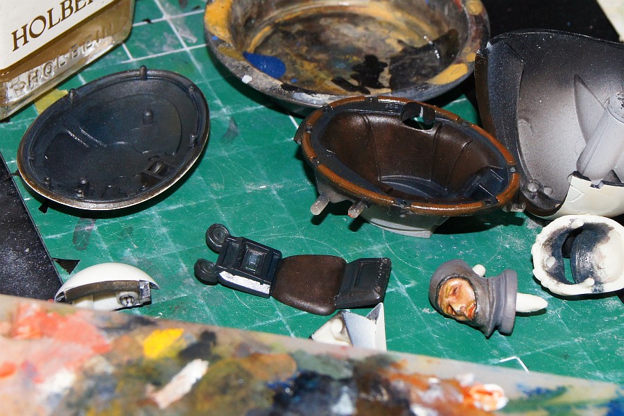 せっかく少し進んだんで、ついでに内装を塗ってしまった。全部油彩。
