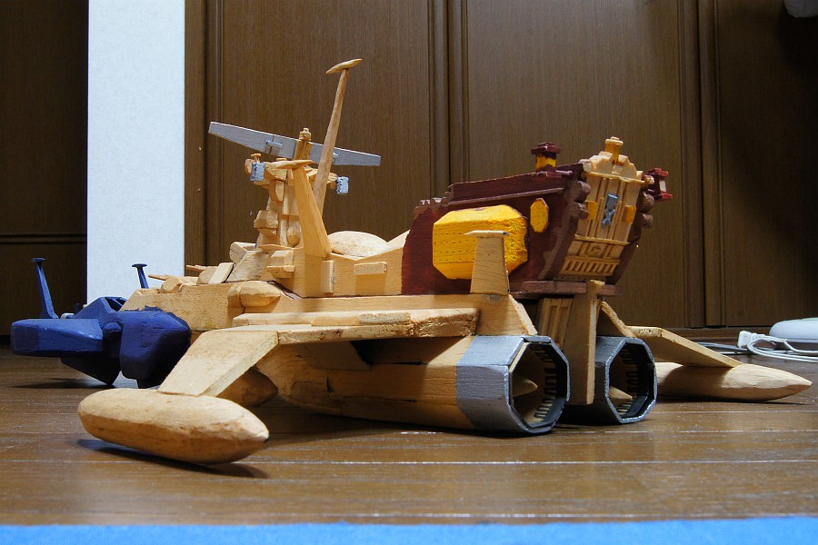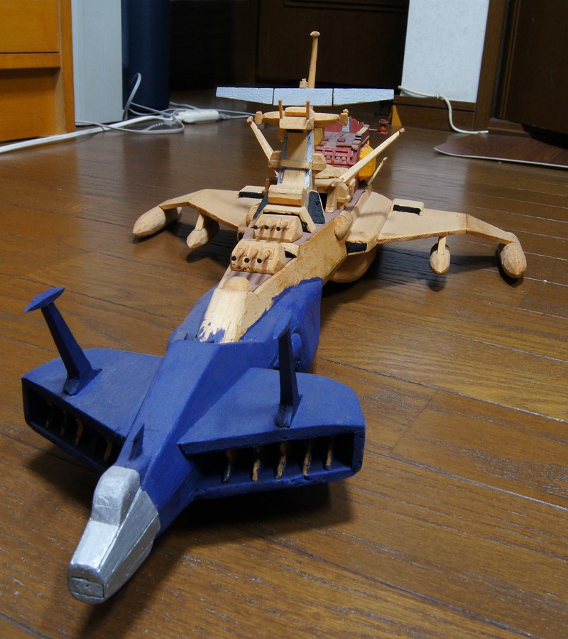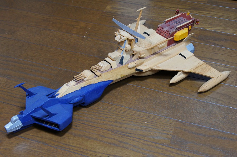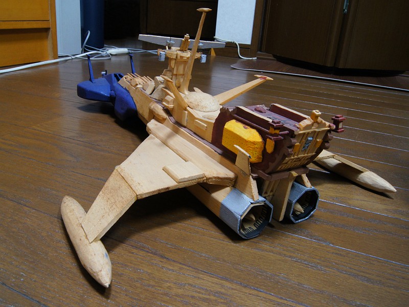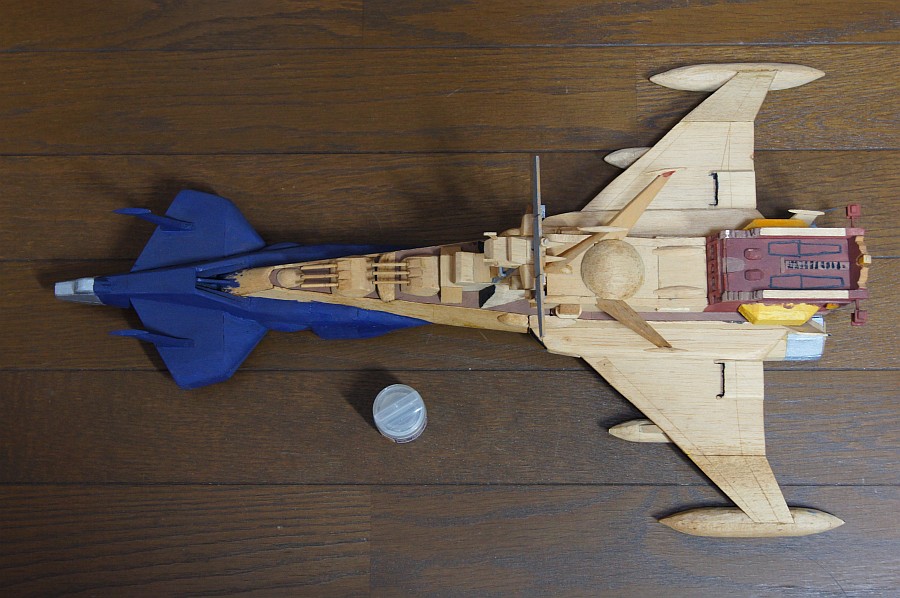 まあ、それほどの腕もなく、小遣いも少ない中学生が、漫画の挿絵をもとに方眼紙に図面を描いて、カッターナイフでバルサ材を切り出して鼻くそボンド(^_^;)でくっつけて作ったにしてはよくやったと自分で自分をほめておこう。(その数年後、色くらいは塗ろうと思ったが面倒になって途中で頓挫したまま今に至る。)
