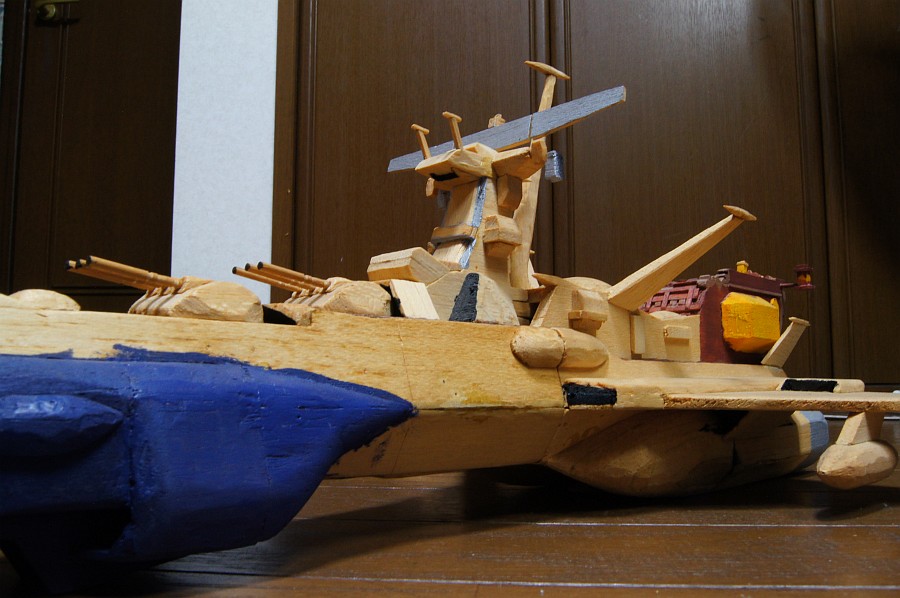 なかなかよい気がする。1番と2番の主砲の間の処理とか、主翼の付け根の処理とか、漫画の絵と比べると若干違和感がある気がするけど、2Dのごまかしがあるんで仕方ないのかもしれないし、当時どこかから発売されてたプラモデルに比べると雲泥の差。