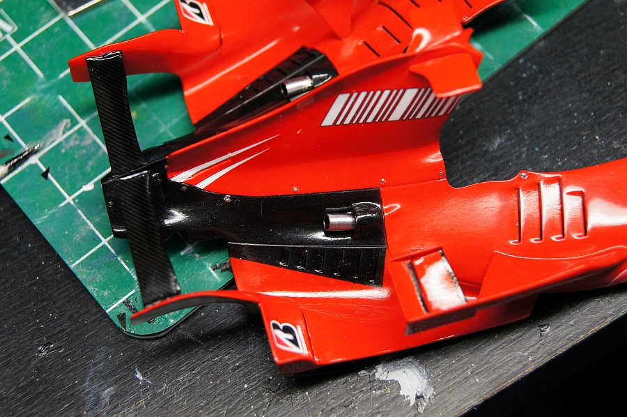 インダクションポッド部分を固定してないんで、滑らせてはめることができます。なんかパチっとはまってくれるのはいいんだけど、隙間は結構ありますねえ。臓物を詰めたせいか、特に、サイドのShellデカールあたりの隙間が目立つようになっちゃいましたね~。この写真ではわからないけど。