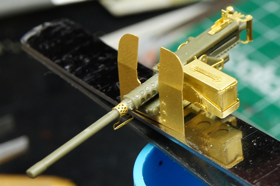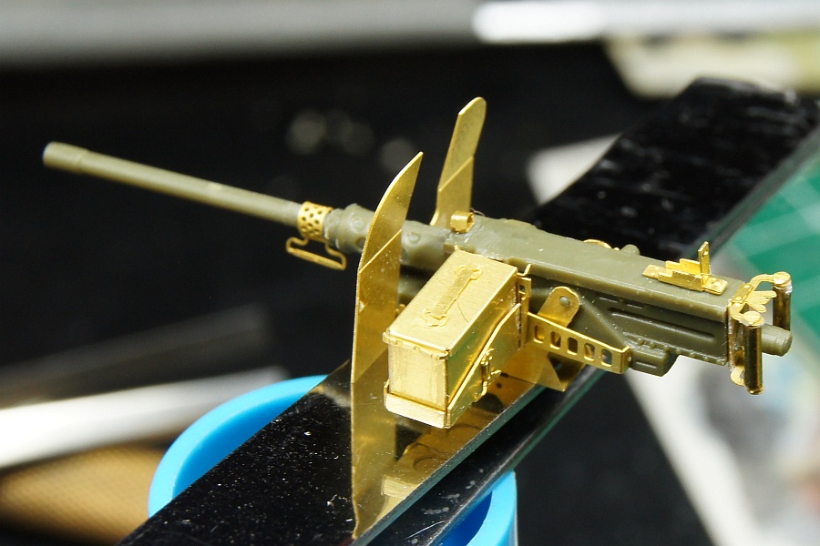 このキット、エッチングパーツが盛りだくさんで、もちろん機関銃のパーツもかなりエッチングパーツでできあがる。