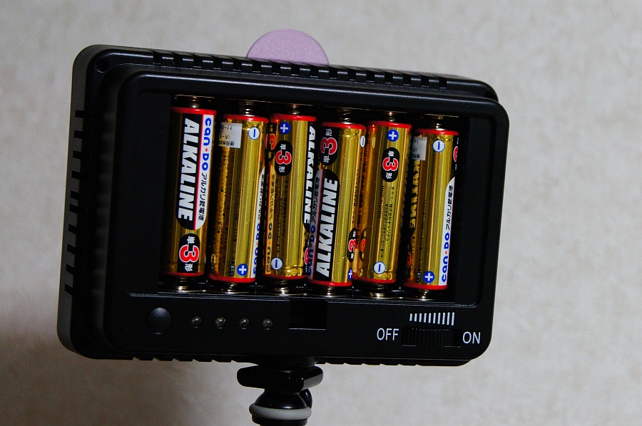 肝心の明るさはどうなのよってことについては、比べるものがないんでよくわからんとしか言えないけど、例えばF22 ISO400で撮りたいなってとき、室内灯+蛍光灯スタンドだと適正シャッタースピードが1/3秒になって手持ちはムリって時に、これを点けたら1/10秒で露出が合って、なんとか手持ち撮影可能になったりする。