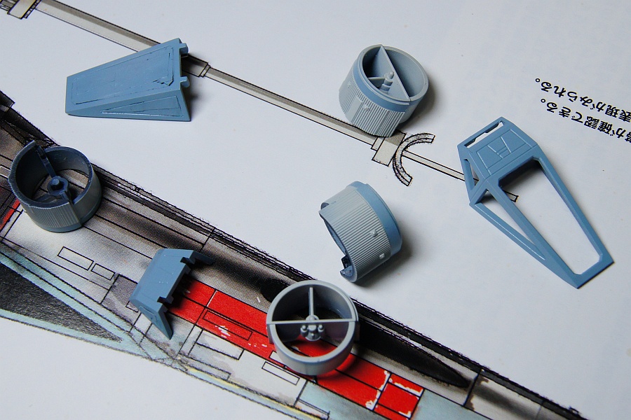 ウイングはこんな感じで。エンジンは焼鉄色や黒鉄色を吹いておく。