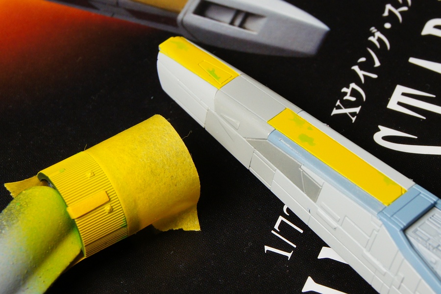 黄色いところもエアブラシで塗る。マスキングゾルを爪楊枝で塗っておいて、