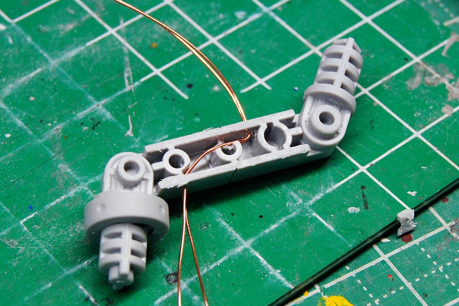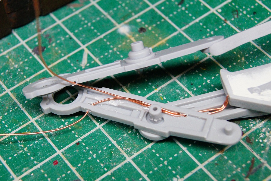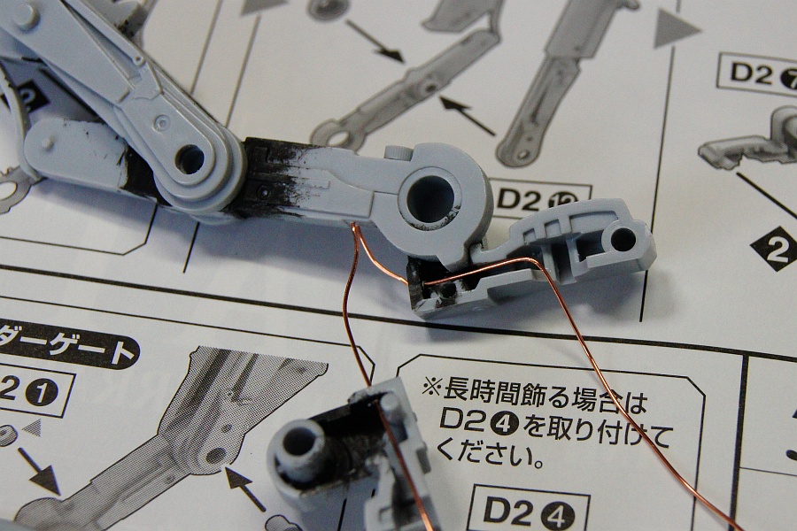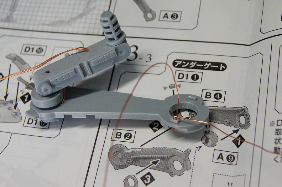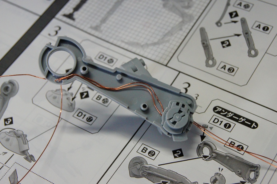 この線だと、足の中を通すのはムリということで、ポリウレタン線の登場。