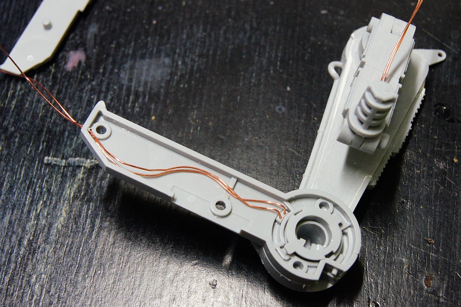 これでなんとか足の中を通って配線完了。