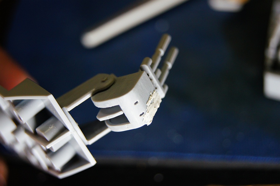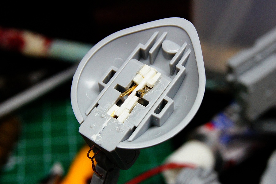 砲身にはファイバーを通すとして、本来は根本にチップLEDでも仕込むといいんだろうけど、本体内からファイバーを引き回してくるってのはさずがに無理か?