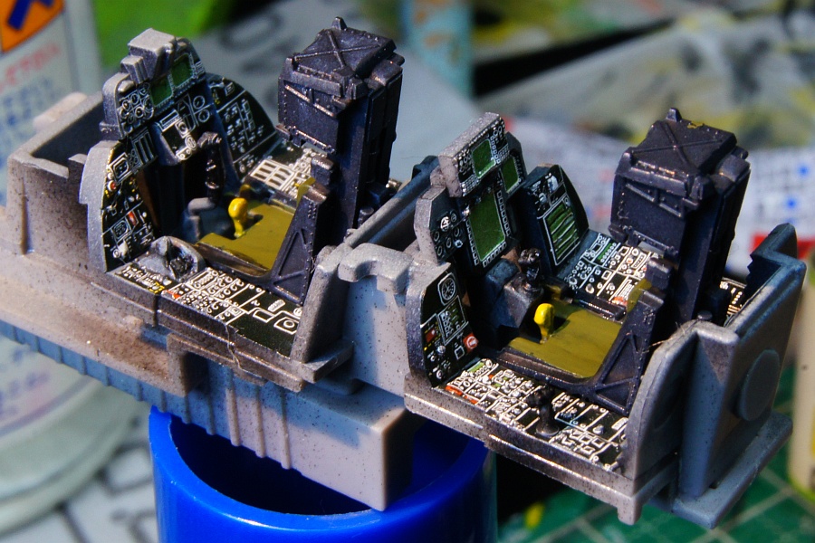 MG誌では、デカールは計器盤のモールドを削ってから貼ってたけど、削るのがもったいなかったんで、貼ったあとでマークセッターとかでなじませる方向で。多少よれるかもしれないけど。